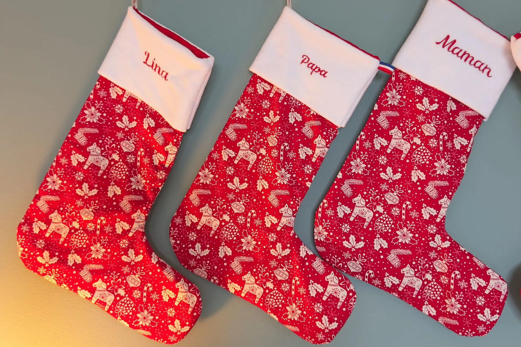 Une botte de Noel avec le prénom brodé, original, fait main .