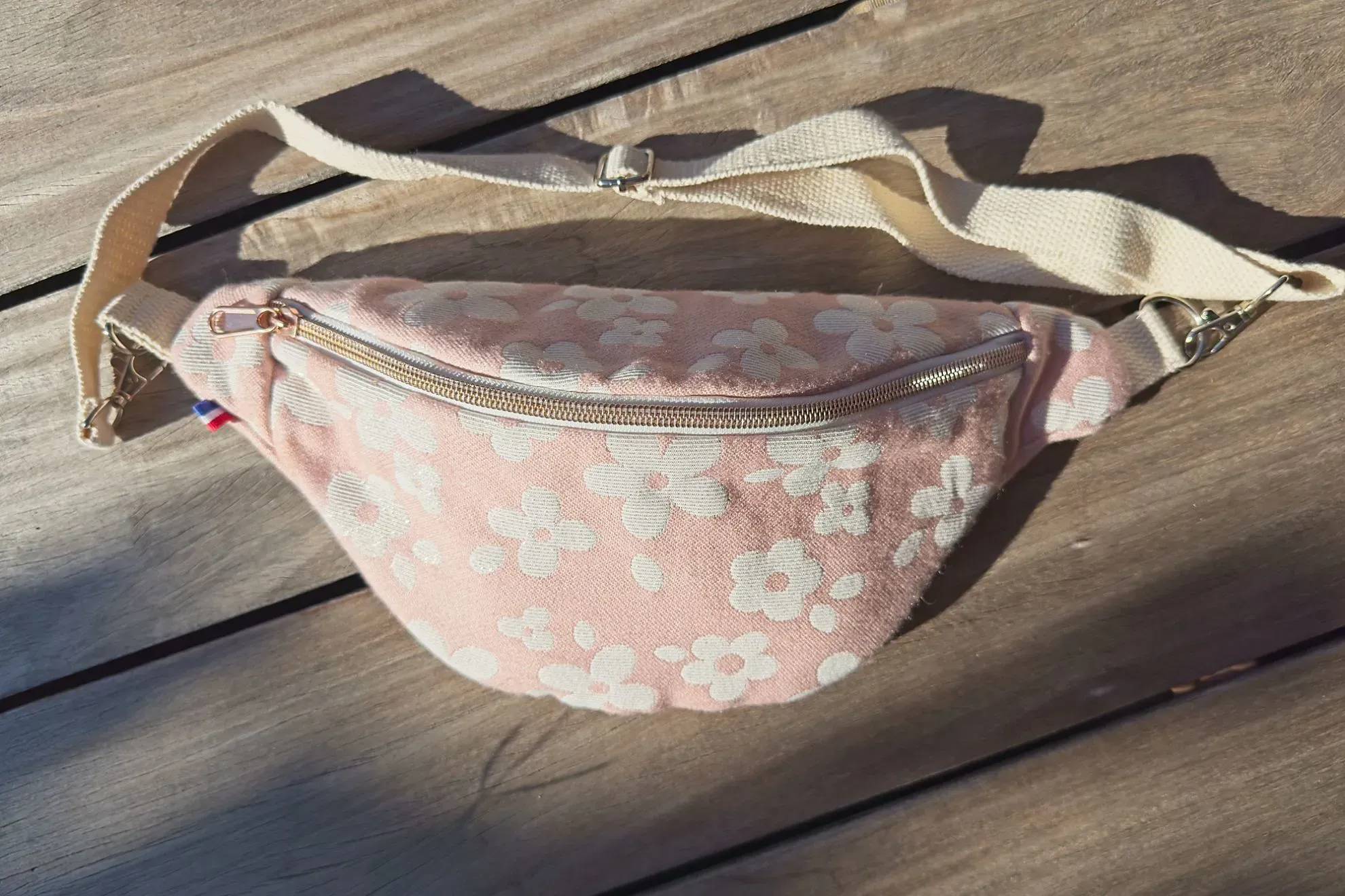 En jacquard rose aux fils dorés et fleurs blanches, Daisy est une banane raffinée qui mêle douceur et éclat. Son petit format pratique en fait l’alliée idéale des sorties élégantes et légères.