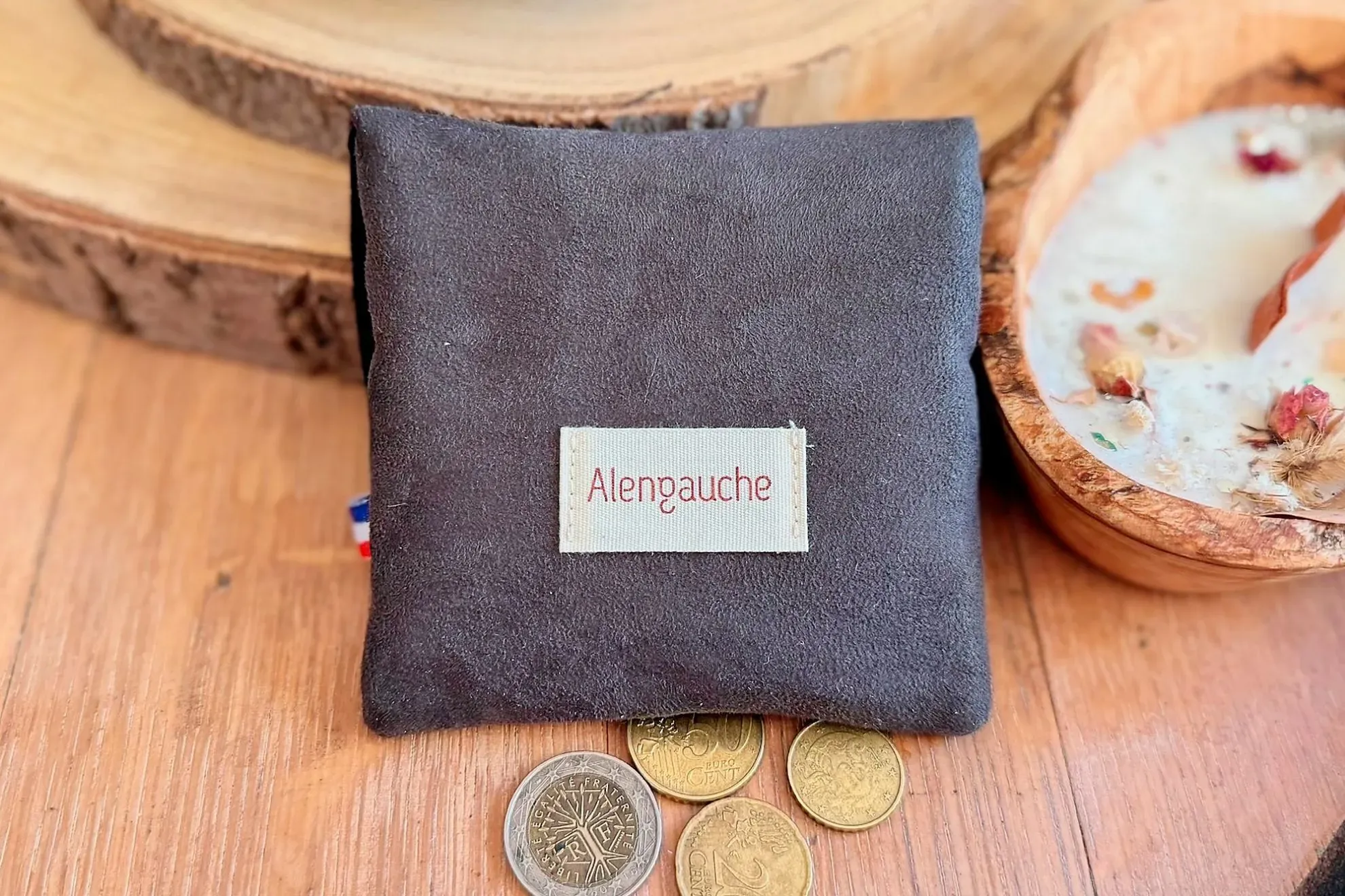 Porte-monnaie compact et fonctionnel en suédine grise, avec un intérieur noir. Sobre et élégant, il dispose de plusieurs compartiments pour cartes, monnaie et billets, idéal pour un usage quotidien, au style mixte.