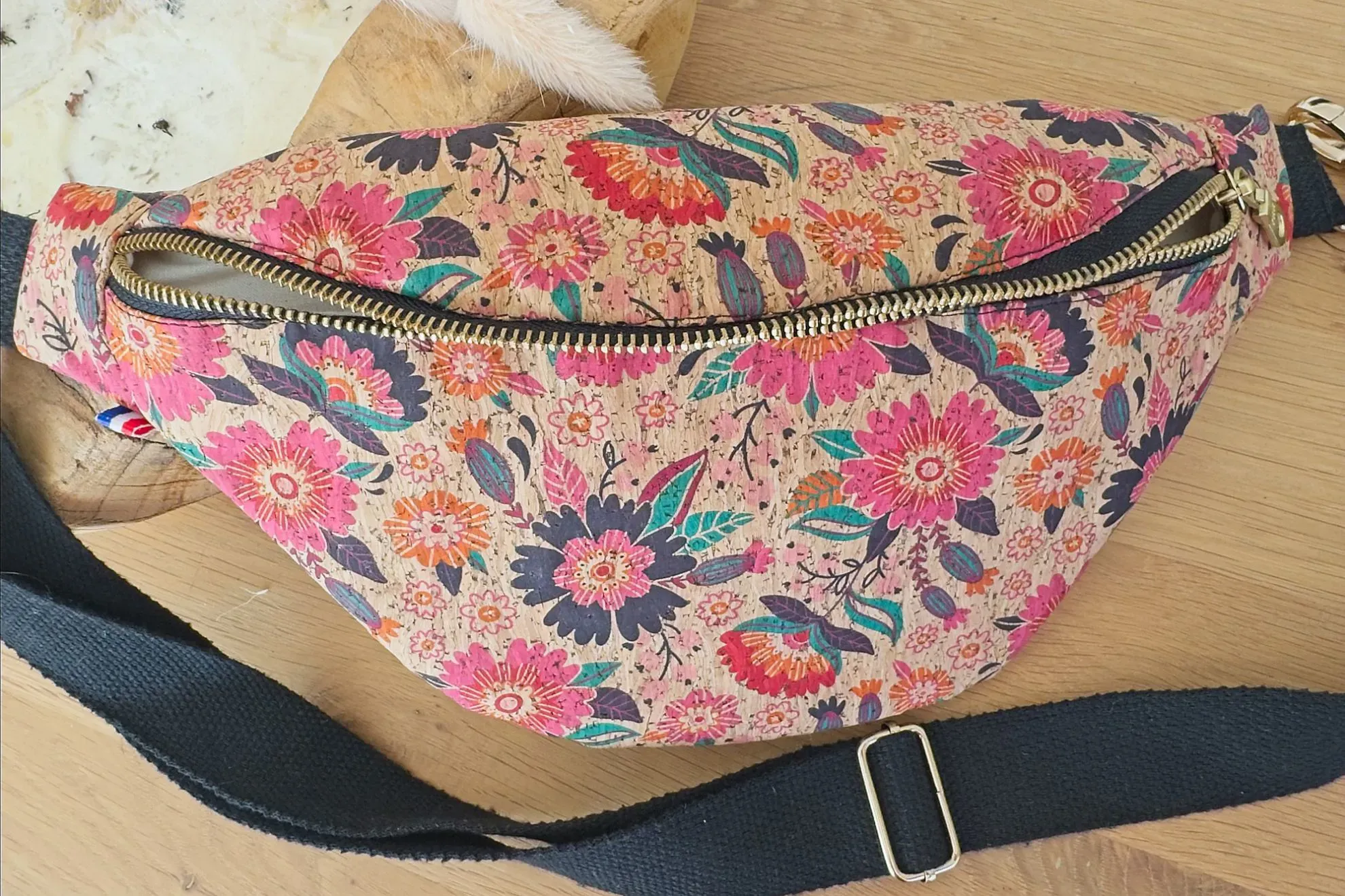 • Matière extérieure : tissu liège à motifs fleurs colorées