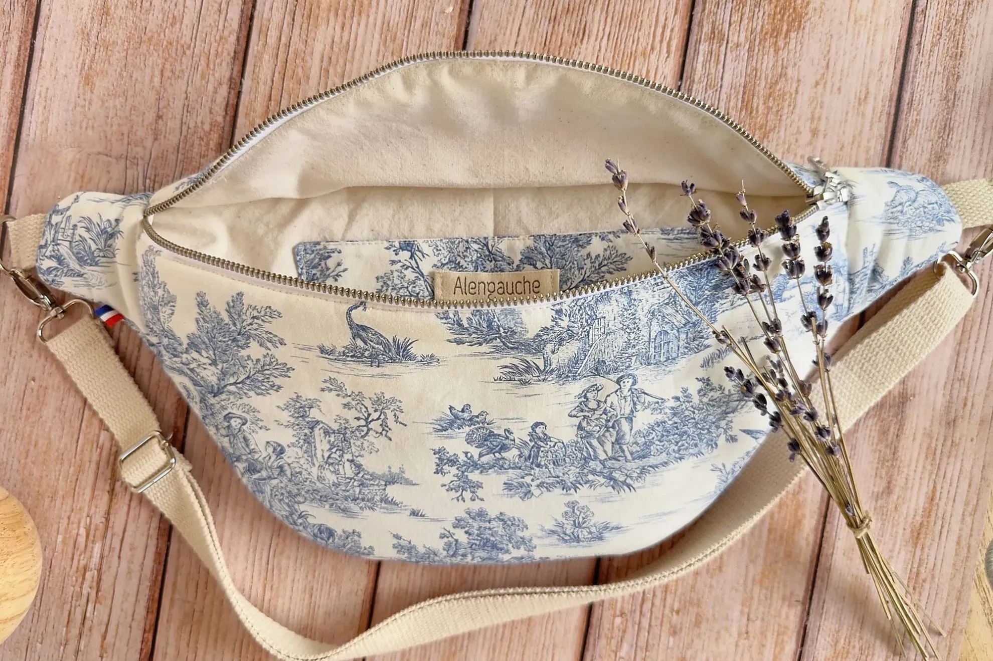 • Matière : coton toile de Jouy bleue / doublure coton écru