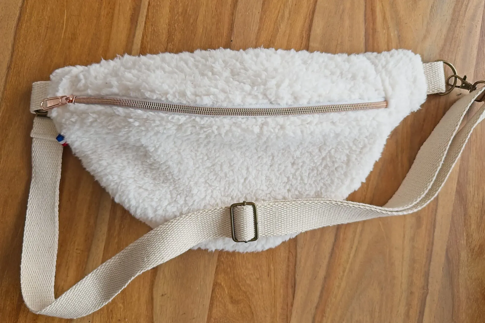 • Sangle : écrue / Mousquetons, anneaux et boucle : bronze
